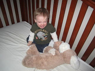 Grant-man crying because he doesn't want to go to bed. He is very obviously tired in this picture though, he always pulls on his ears when he is sleepy.
